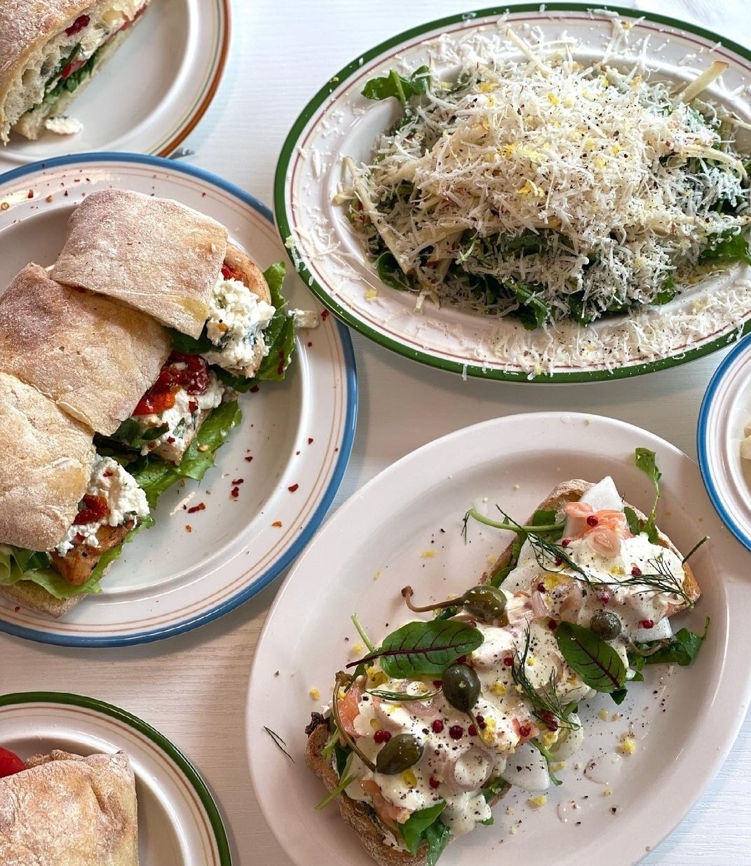 생과일&허브 주스 5,000 | 잠봉뵈르와 스피니치딥 11,300 | 새우와 프로슈토 12,800 | 루꼴라와 블루치즈 10,800 | 구운 브로콜리니와 후무스 11,300 | 바질치킨과 페타치즈 11,300 | 연어와 딜크림치즈 13,800 | 사과&루꼴라와 그라나 파다노 샐러드 8,500