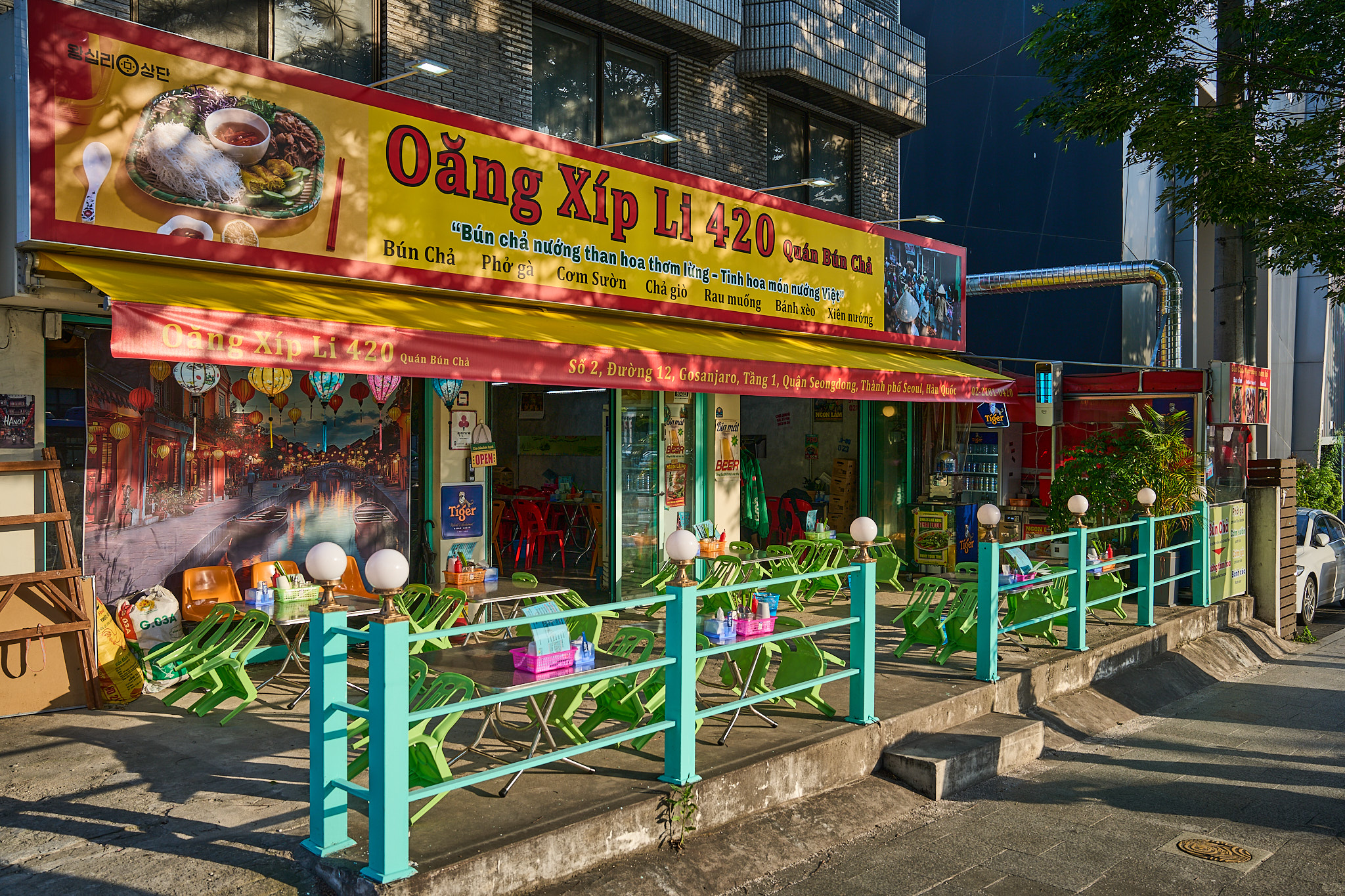 Bun Cha / 분짜 16,000 | Pho Ga / 닭고기 쌀국수 10,500 | Pho ga cay / 퍼 가 까이 11,000 | Pho Ga Nam Bo /비빔쌀국수 11,000 | Com suon / 껌 쓰언 11,500 | Com ga / 껌 가 11,500 | Nem lui / 넴 루이 15,000 | Bang xeo / 반 쎄오 10,000 | 분더우느억짬 13,000 | Lau / 러우 22,000 | 반미샌드위치 5,500 | 공심채 볶음 8,000 | Cha gio / 짜조 5,000 | 닭발구이 3,000 | 닭날개 구이 11,000 | 반미 느엉 5,500 | 열빙어구이 3,000 | 닭 근위구이 11,000 | 통오징어구이 16,000 | 새우꼬치 3,500 | 가리비구이 11,000 | 복숭아 아이스티 5,000 | 베트남 레몬그린티 3,000 | Nep moi / 넵 머이 25,000 | 타이거 라들러 작은캔 5,000 | 타이거 작은 캔 5,000 | 타이거 생 5,000