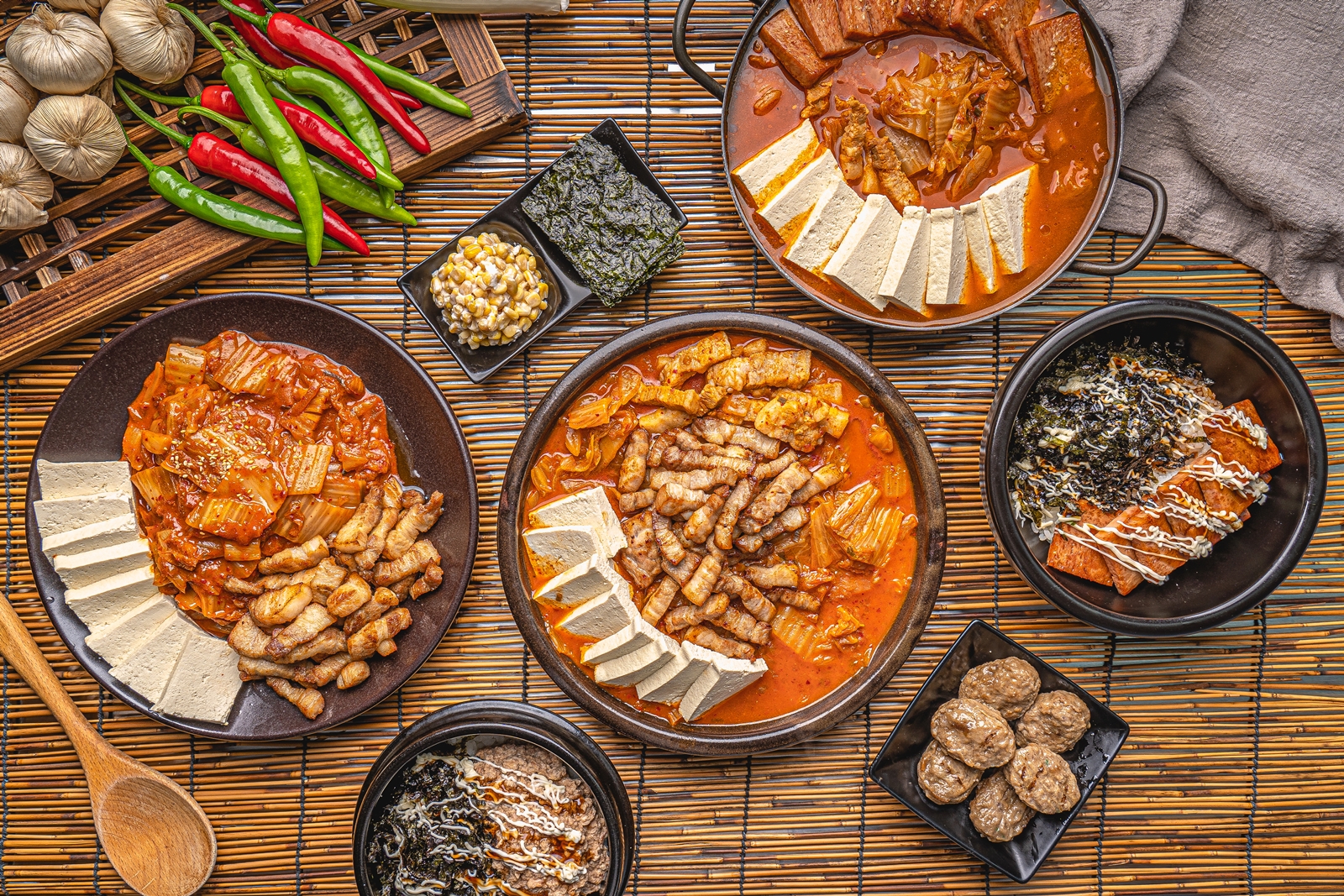 직화 삼겹 김치찜 18,900 | 직화 스팸 & 삼겹 김치찜 18,900 | 직화 삼겹 김치 구이 28,900 | 직화 삼겹 김치찌개 18,900 | 직화 스팸 & 삼겹 김치찌개 18,900